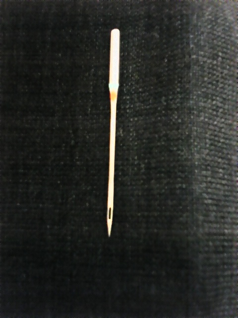 使用するミシン針は糸が切れにくいように作られた針で針穴がたて長になっています