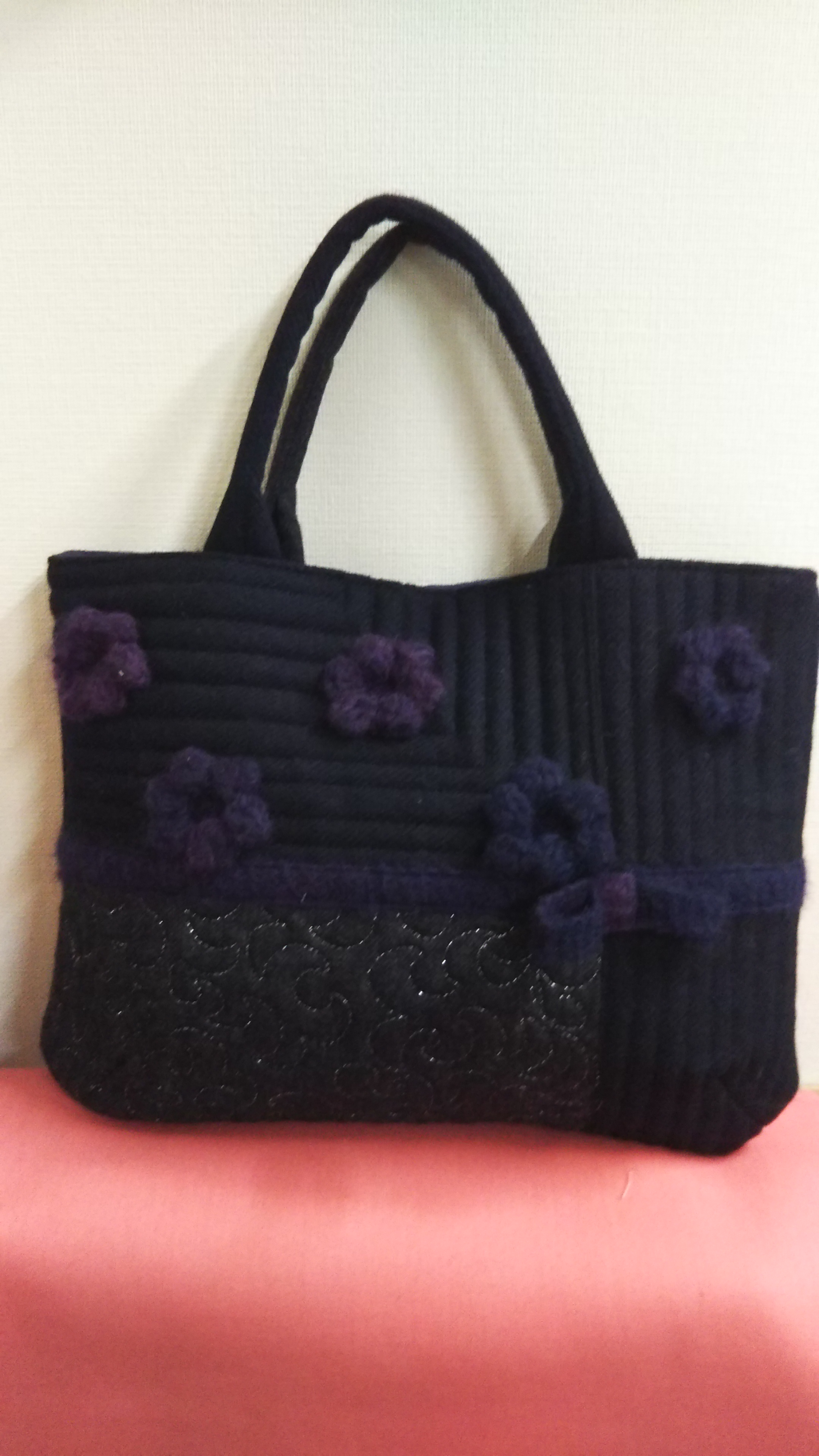 編み物好きだから、キルトにくっ付けてみました?