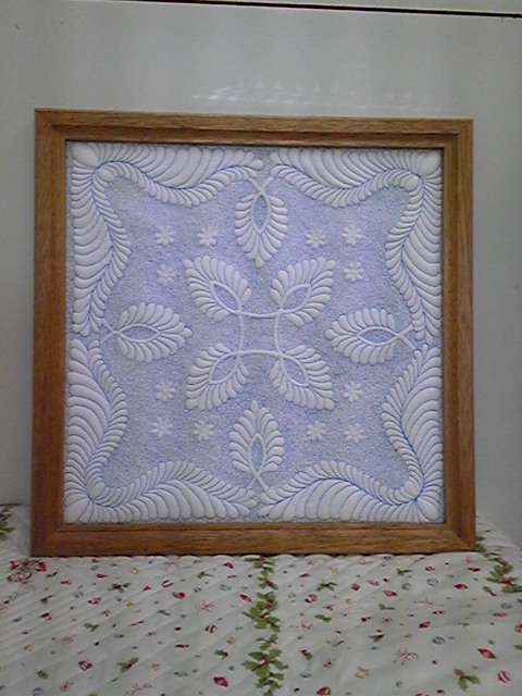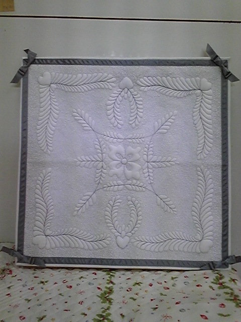 この作品はトラプント(綿を詰める手法)しています。ミシンでは裏布をきらずに綿詰めが出来ます。