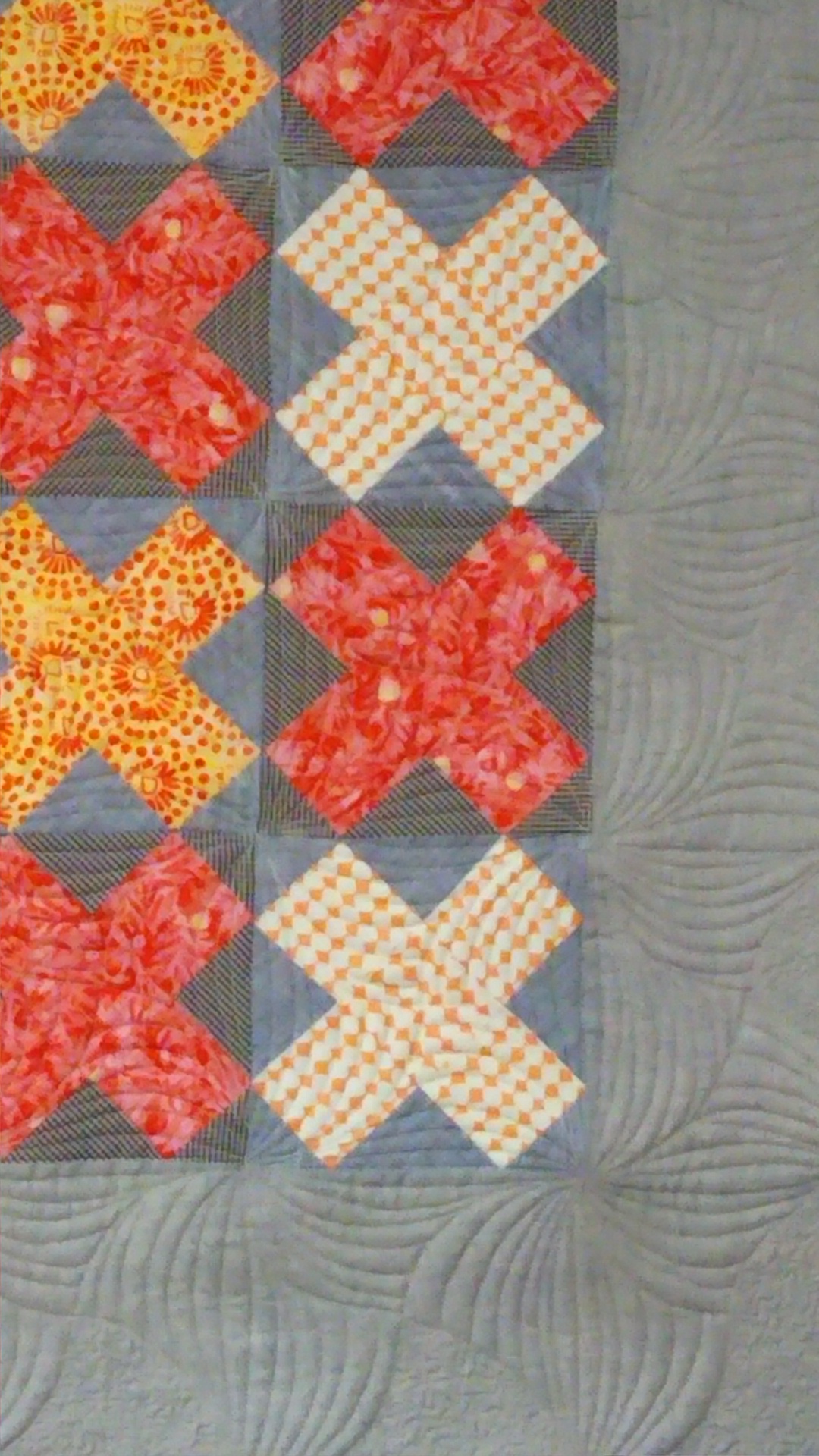 このサイズのパターンに決まるまで10日くらい、カッティングしてトップの完成まで10日くらい、キルティングしてパイピングまで1週間でした。